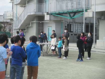 肌寒い朝でしたが、全校朝会は校庭で行いました。校長先生からは、6年生の卒業文集の一部が、全校児童に紹介されました。たくさんの友達や周囲の人から支えられて今の自分があることが綴られた素敵な内容でした。その他、都の展覧会に出品された児童の表彰がありました。インフルエンザでお休みした子どもたちも戻ってきました。今週も1週間、元気に過ごしましょう。