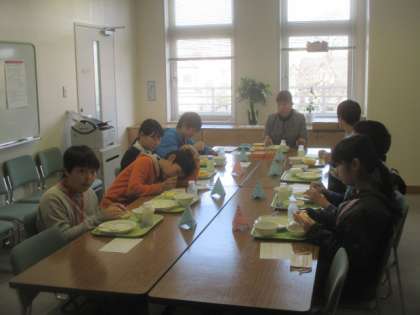 今日も6年生は校長室で会食がありました。元気な男の子の笑い声が聞こえてきて、毎回とても楽しそうです。小学校での給食も残りあとわずか。しっかり味わいながら、友達や先生とのひとときを満喫してほしいです。