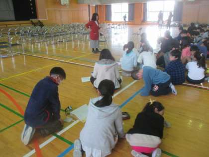 明日の5校時に行われる、地区班こども会の集団下校に向けて、次年度の各地区の班長となる5年生が体育館に集合し、担当の先生から説明を受けました。来年4月から班長として地区班をまとめる役を担う5年生には、下級生のお世話をする大きな責任があります。これまで先輩たちが担ってきた役割をしっかりと引き継いでいくために、真剣に説明を聞いて明日の仕事内容を確認しました。新班長さん、よろしく頼みますね。