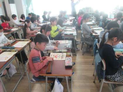 3年生は、算数のそろばんの授業で、東京都珠算教育連盟の先生にご来校いただき、指導していただきました。そろばんの各部位の名称の説明から入り、扱い方など基本的なことから丁寧に教えていただきました。実際にそろばんを使っての指導では、指を使っての珠の弾き方を分かりやすく教えていただき、子どもたちも楽しく学べたようです。明日は、そろばんを使っての計算の仕方を教わります。土曜日までよろしくお願いします。