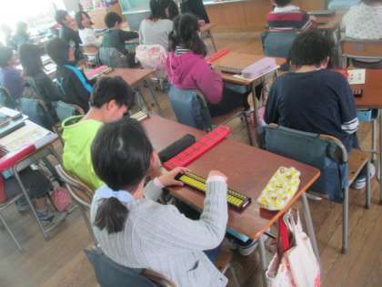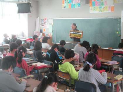 今日も3年生は、珠算教育連盟の先生によるそろばんの授業です。今日は、実際にそろばんを使って計算をしました。珠の置き方や払い方を確認して、まずは一桁のたし算から行います。簡単な計算でも、自分のそろばんで計算ができると、とてもうれしいようです。いよいよ明日は最終回。さらにそろばんのスキルを身につけたいですね。