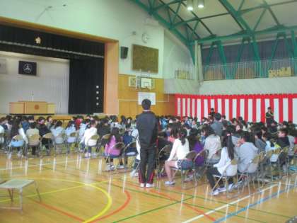 6校時は、5・6年生合同での卒業式の練習が体育館でありました。合唱の練習では、少し元気のなかった6年生も、今日はしっかり声が出てがんばっていました。卒業までのカウントダウンが始まり、気持ちの高ぶりが練習にも現れてきたようです。最後に全体で練習をふり返り、明日の取組に生かしていました。