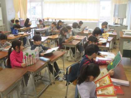 今朝の始業前の時間は、学級の時間です。それぞれの教室で課題プリントをしたり、読書をしたりして静かに過ごします。1階の1・2年生は、読書をするクラスが多いようです。寒い朝になりましたので、暖かい教室で落ち着いて本を読むのもいいですね。