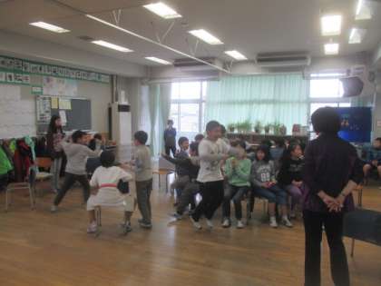 1年間の学習のまとめも終わり、各クラスではお楽しみ会が計画され、実行されていました。子どもたちで話し合って決めたゲームなどを中心に、転校が決まっているお友達との別れを惜しんでの企画もあったようです。今日はあいにくの雨で校庭が使えませんでしたが、教室でできることでみんな協力し、楽しいひとときを過ごしていたようです。