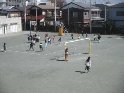 今日の雨がうそのように、今日は気持ちのよい青空が広がりました。今日もお楽しみ会をするクラスが、校庭で楽しく活動していました。クラス替えのある学年は、今のメンバーとの絆を深め、また4月に新たな出会いを迎えます。元気な笑い声が広い校庭に響き渡っていました。