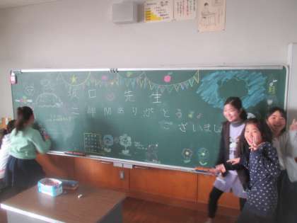 4年生以下の子どもたちは、今日が今年度最後の登校日です。4年2組の子どもたちは、少し早めに登校して、2年間お世話になった担任の先生に向けてメッセージを準備していました。最終日、それぞれの学級でよい締めくくりをしてほしいですね。
