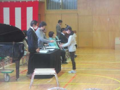 2時間目終了後、5・6年生は明日の卒業式のリハーサルです。本番と同じような形で進行し、アナウンスから入場、証書授与など、一通り通しで行われました。これまで練習を積み重ねた成果はしっかりと出ていて、自信をもってできていました。