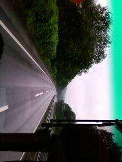 日光有料道路に入りました。残念ながらバスはワイパーを動かしています。今、雨がひどくなり、社内にどよめきが起きています。