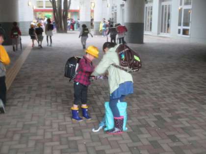 4月8日(土)土曜授業日 雨の登校風景