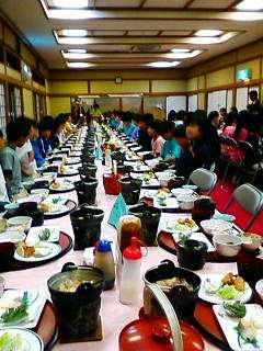 食堂に揃いました。ご馳走を前に、気が急いてきます。