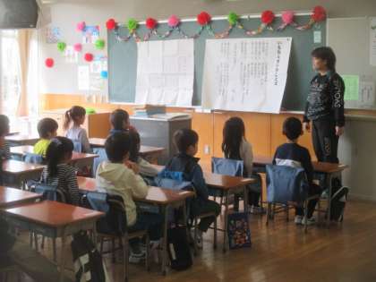全校朝会に参加しなかった1年生は、それぞれの教室で朝の会の確認などをしました。1日は元気なあいさつから始まります。今週は1週間しっかりお勉強があります。1日も早く学校生活のリズムを覚えて、楽しく過ごせるようにしていきましょうね。