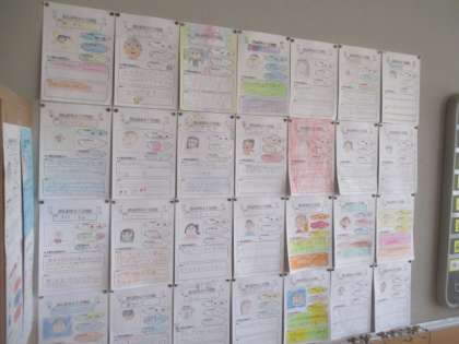 2年生の教室には、子どもたちが書いた それぞれの1学期のめあてが掲示してありました。書かれている内容には、1年生が入ってきて、上級生としてしっかりしなければいけないという内容のものが多かったです。2年生としての自覚が芽生えいるように思います。