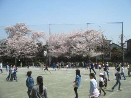 今日も気持ちよい春の陽気に誘われて、子どもたちが校庭で元気に遊んでいました。黄色い帽子をかぶった1年生も、校庭奥の遊具で楽しそうに遊ぶ姿が見られました。桜の花びらが舞い散る中で、楽しそうな子どもたちの笑顔が輝いて見えました。