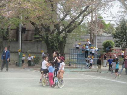 今日も気温が20度を超える暖かな1日となり、中休みはみんな元気に外遊びを楽しみました。先生たちも子どもたちといっしょに身体を動かし、リフレッシュです。桜の花びらは散ってしまいましたが、その代わりに校庭には、楽しそうな笑い声と笑顔がいっぱいに広がっていました。