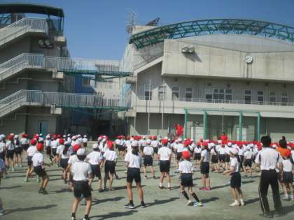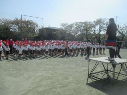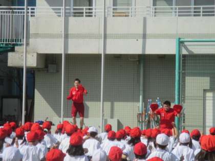 今朝の体育朝会は、全校朝会での並び方の確認と、体育の授業の服装について、そして準備運動で行っている、恒例の「エビカニクス」の練習でした。久しぶりの「エビカニクス」でしたが、みんなノリノリで踊っていました。