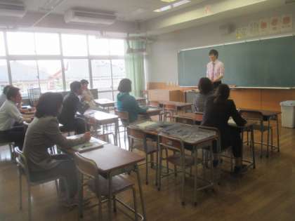 今週本校に着任した新規採用の小林先生の模擬授業が放課後行われ、先生たちの監修の下、算数の授業の導入についての指導を受けました。先輩の先生たちからの厳しい指導や助言を受け、これからも、さらに教材研究や指導法の改善に励んでいきます。