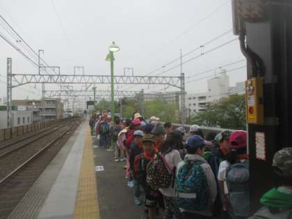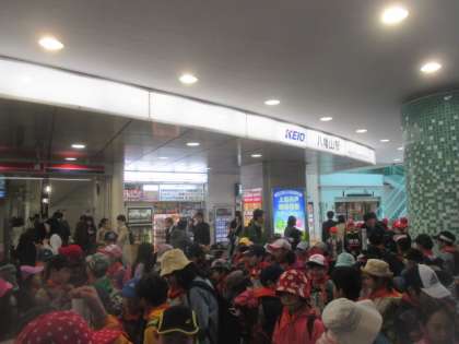 八幡山駅に到着です。これから電車に乗ります。公共のルールをしっかり守って、高尾山まで無事たどり着くことができるでしょうか?