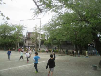 5時間授業の水曜日。給食の後の昼休みは、みんな校庭に出て遊びます。クラス替えのあった学年は、新しい友だちとも仲良く遊べているようです。生活科園で先生と遊ぶ子や植物の観察をする子もいます。飼育委員会の6年生は、黙々とウサギ小屋の掃除をしてくれていました。ご苦労様です。