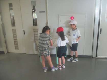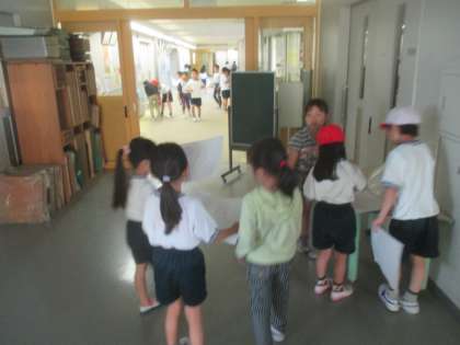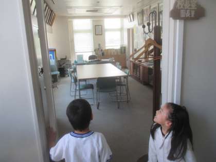 各フロアを回り、1年生が知らない特別教室や職員室なども紹介します。2年生は、自分たちの知っていることや調べたことなどをもとに、1年生にわかりやすく丁寧に教えていました。立派なお兄さん、お姉さんでした。