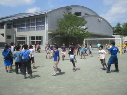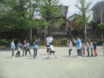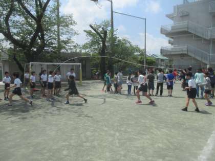 さすが高学年は迫力が違います。クラス替えのあった5年生も、新しいメンバーでタイミングを合わせながら取り組んでいました。さすが6年生のチームワークとスピードは圧巻です。それを見ていた3年生も負けじと、声を出して気合いを入れていました。どの学年も、春空の下、爽やかな汗をかくことができました。