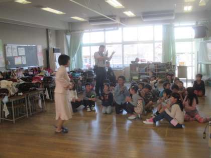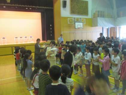 いよいよお別れの時が来ました。子どもたちは列を作って、退場する先生方を見送りました。
