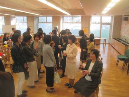 子どもたちが下校した後、PTAの主催での歓送迎会が行われました。きれいな飾り付けがされたランチルームには、たくさんの保護者の方々や卒業生も大勢駆けつけて、離任された先生方との再会を喜びました。また、4月に本校に着任した先生方の紹介も行われ、それぞれよりあいさつがありました。新旧の八幡山小の教職員と保護者の方々が集まり、短い時間でしたが、楽しい思い出話などで盛り上がっていました。