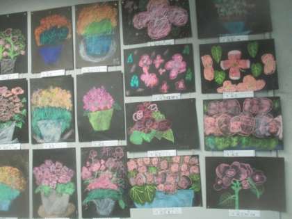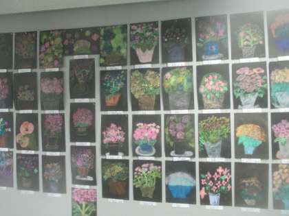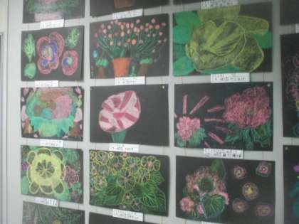 6年生が図工の時間に描いた花の絵が、2階のフロアに展示してあります。どの作品も細かいところまでよく観察して、忠実に描かれています。さすが6年生の作品です。ご来校した際に、ぜひ立ち止まってご覧なってください。