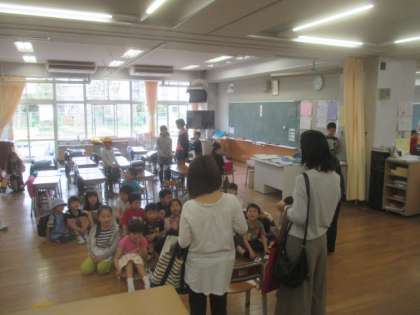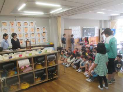 今朝も1年生の教室では、保護者の方々による読み聞かせがありました。始まる前で、1年生の集合を促す6年生がジャンケン大会を企画してくれました。そのおかげで、1年生がどんどん集まってきます。時間前にはしっかり整列できて、みんなお行儀よく座ってあいさつができました。今日はどんな本を読んでくれるのか、とても楽しみですね。