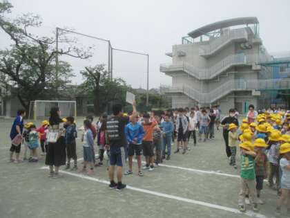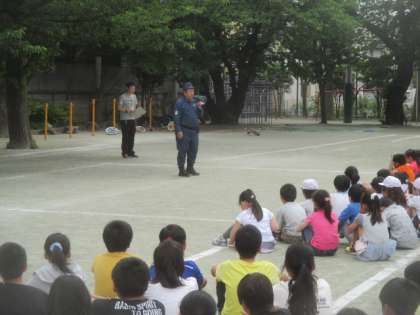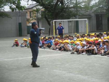 5月の避難訓練は、中休みに理科室から火災が発生したという想定で行われました。校庭で遊んでいる児童も、近くの先生の指示をよく聞いて、火災現場を避けながら安全に避難することができました。今回も地域の防災活動で活躍されている、八幡山町会の防災部長の尾崎さんから講評をいただき、特に1年生が立派だったとお褒めの言葉をいただきました。本日はご多用の中ご参加いただき、ありがとうございました。