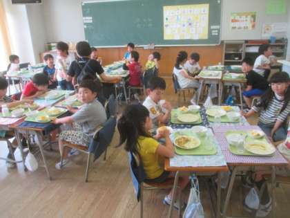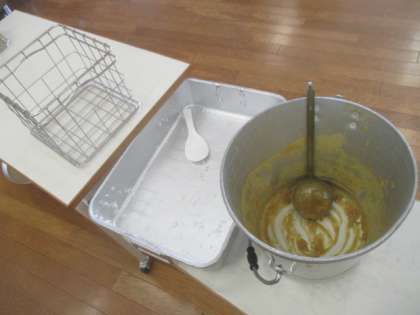 今日は4時間授業。しっかり運動し、しっかり勉強もした1年生は、給食もしっかり食べられます。今日は大好きなカレーライスです。どのクラスも残さずきれいに食べられたようです。食缶は空っぽでした。