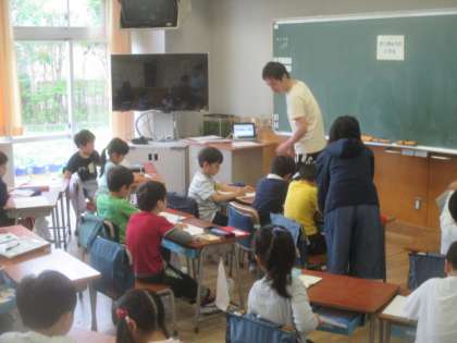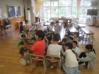 1年生の教室は、6年生の読み聞かせをしているクラスや、今日の地区班集団下校の説明を受けているクラスなど、朝の学級の時間もさまざまでした。でも、朝の支度は、みんなとてもスムーズになり、すんなり1時間目の授業に入れました。