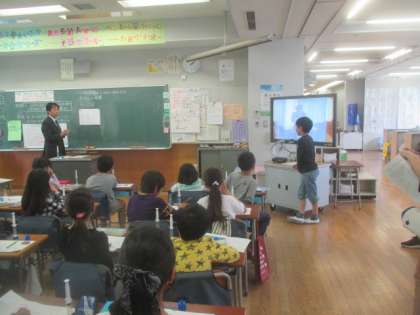注射器の筒の中の空気がどうなっていったか、友だちの説明を聞いて分かりやすかったものを推薦し、最後に紹介しました。発表を聞いて自分の考えと照らし合わせながら、子どもたちは、さらに理解を深め、学びを広げていけたようです。授業規律も整っていて、とても立派な授業になりました。クラスがしっかり「学ぶ集団」になっていました。全校児童が帰った後の5時間目、4年1組の皆さんは本当にお疲れ様でした。