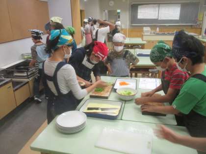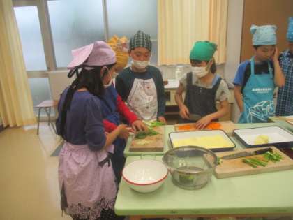 6年生は、家庭科の調理実習で、「三色野菜とたまごの油炒め」を作りました。さすが6年生ともなると手際よく、班で協力して作業もスムーズに進んでいました。最後においしくいただき、片付けもみんなで協力してできました。