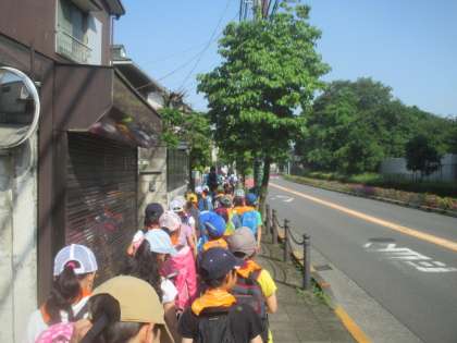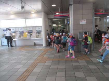 八幡山駅に向かう道中の歩き方は、先日の「町たんけん」で練習したこともあって、とても立派でした。駅でも他の人たちの迷惑にならないように、しっかり並んで待つことができました。