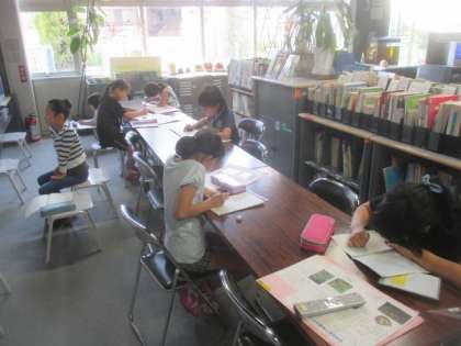 施設内を自由に移動しながら、子どもたちは必要に応じて教材を取り出し、自分の課題を調べます。およそ1時間、どの子も集中して取り組むことができました。