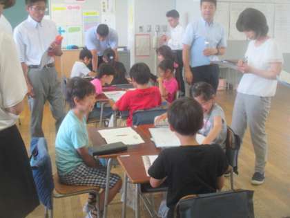 グループで自分の予想を伝え合いながら、キーワードを探ります。「太陽」・「人」・「かげ」など、グループの中で共通した言葉を使い、どのような観察ができるかを話し合いました。