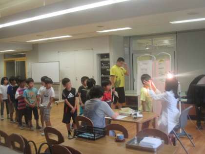 今日は3年生以上で、眼科検診がありました。校医の先生の指示を聞いて、どの学年もスムーズに検診が進んでいました。1学期の定期健康診断も残りわずかです。治療などが必要な児童は、早めにかかりつけのお医者さんに診てもらってくださいね。