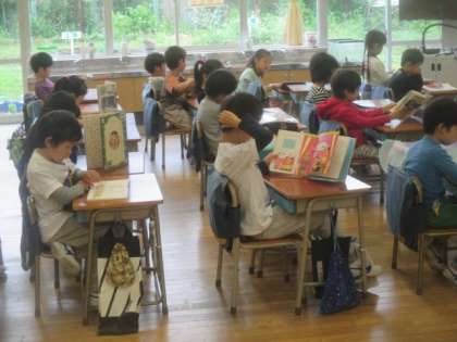 1年1組の学級の時間は、静かに読書です。宿題もきちんと提出でき、じっくり朝の15分間、本に親しむことができました。今日は何の本にしようか迷っている子どもたちでしたが、片づけもしっかりできていました。