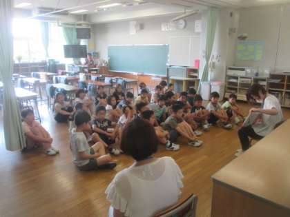 3年生の教室でも、保護者の皆さんが当番で朝の読み聞かせをしていただいています。3年1組では、前のめりになって、お母さんたちの読む絵本に夢中になっていました。
