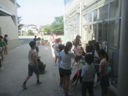 文化系のクラブもがんばっています。器楽クラブでは、それぞれが担当する楽器の練習に励み、1曲の演奏に仕上げようと、みんな集中して取り組んでいました。科学クラブの今日の課題はシャボン玉作りです。大きなシャボンを飛ばそうと、息の吹きかけ方をいろいろと工夫しながら、それぞれが思い思いの楽しみ方をしていました。