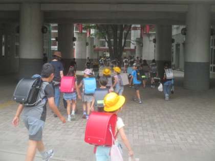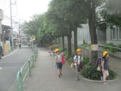 早朝に5年生が出発しましたが、他学年の子どもたちは、普段通りに8時過ぎに登校です。「おはようございます!」の元気なあいさつで、今日も1日が始まります。ちょっとくずっている1年生も、上級生のお姉さんや同じクラスの友だちに励まされて、教室に入っていきました。5年生もがんばっています。学校に残った子どもたちも、1日しっかり過ごしていきましょう。