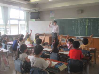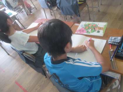 3年3組担任の利根川先生は、川場移動教室に参加しているために3日間教室は留守になりますが、代わりに算数少人数の小林先生が中心になって授業を行います。3時間目は、国語の『本をさがそう』の単元の授業。いつもは算数を教わっている子どもたちですが、小林先生の説明を聞いて積極的に発言し、とても意欲的な活動になっていました。担任がいなくても、3組の子どもたちはしっかりやっています。