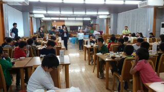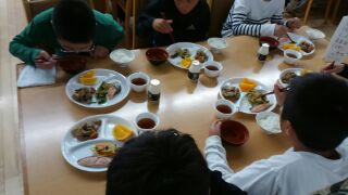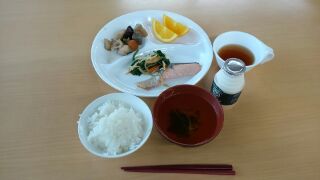 初めての食堂での食事です。食事係さんが、配膳してくれました。