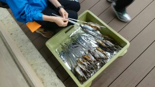 マスつかみ体験のマスが焼き上がりました。炭火でじっくり焼いてくださったので、頭からしっぽまで、更に骨まで食べることが出来ました。もっと食べたいととても好評価でした。