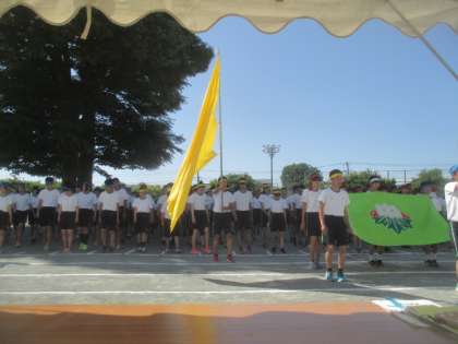 夏晴れの青空の下、みどりの学び舎の緑丘中学校で、創立70周年記念の体育大会が開催されました。本校出身の生徒もいろいろな競技で活躍し、とても凛々しい姿を見せてくれました。さすが中学生は、競技の迫力が違います。今年3月に卒業した1年生も、元気に参加していました。