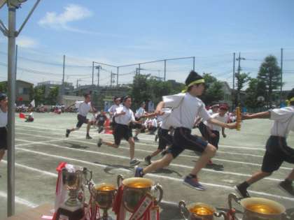晴天の土曜日、近隣の各公立中学校では、体育大会や運動会が開催されています。本校からの進学者も多い、船橋希望中学校でも運動会が行われていました.この3月に卒業した生徒もすっかり学校になじんで、元気な姿を見せてくれました。また、小学校にも遊びに来てくださいね。
