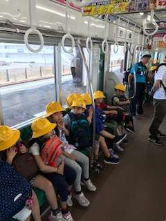 電車に乗り込みます。車内では静かに他のお客さんの迷惑にならないようにしましょうね。