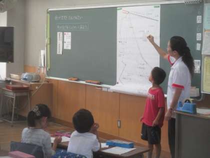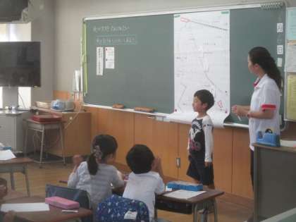 8日(木)に2年2組で行われる、校内研究授業の事前授業が、1組で行われました。生活科の『まちが大すきたんけんたい』の学習で、先日行ったフィールドワークをもとに、見つけたことや思ったことを友だち同士で紹介し合って、自分たちの暮らす町について関心を高めようというのがねらいです。1組の子どもたちは、とても意欲的に手を挙げて発表を行い、活気のある授業が展開されていました。明後日、2組の子どもたちもがんばってくださいね。