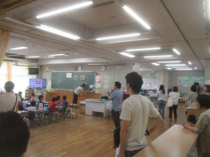 3時間目の授業の様子です。2年1組は体育館でボール運動をしていました。理科室では、4年2組が理科の実験をしています。1年生もしっかり先生のお話を聞いて、授業に集中していました。