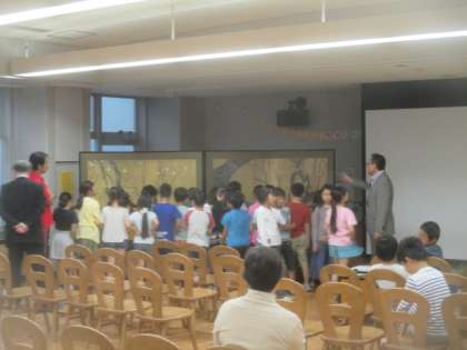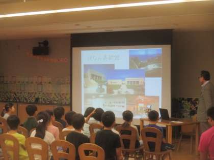 昨年度に引き続き、公益財団法人岡田茂吉美術文化財団のご協力の下、3年生を対象とした美術鑑賞授業が行われました。美術品の画像や美術品のレプリカを使い、子どもたちは日本の美術文化の素晴らしさを体験します。MOA美術館の講師方の説明は、子どもたちとの対話形式で進められ、みんな興味深く話に集中していました。最後は尾形光琳作の『紅白梅図屏風』の原寸大レプリカが登場し、近くに寄って鑑賞させてもらいました。子どもたちにとってはとても貴重な講義と体験になりました。講師の先生や文化財団のスタッフの皆さんには早朝から準備していただき、素敵な授業をありがとうございました。